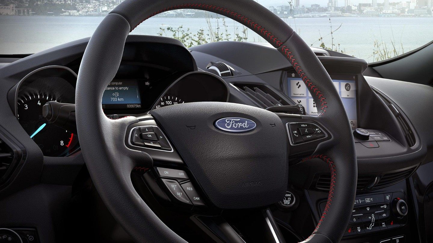 Llantas de acero de 17’’ y 5 radios. Faros halógenos y antiniebla. Retrovisores térmicos del color de la carrocería con intermitentes. Sistema de control de velocidad con limitador de velocidad ajustable. Arranque sin llave. Sistema de control de velocidad con limitador de velocidad ajustable. Radio/CD con Ford SYNC 3. Climatizador manual. Volante y pomo forrado en cuero. Sistema MyKey.