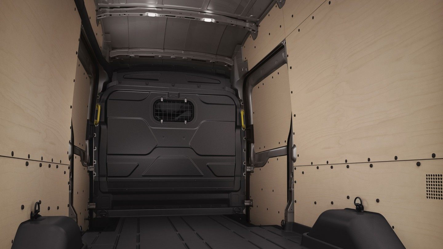 Detrás del mamparo de metal hay 15,1 metros cúbicos de espacio de carga. Gracias a las paredes prácticamente verticales, un piso de carga plano y longitudes de carga de hasta 4217 mm en la versión L4 "Jumbo", se pueden transportar fácilmente artículos de las mayores longitudes.