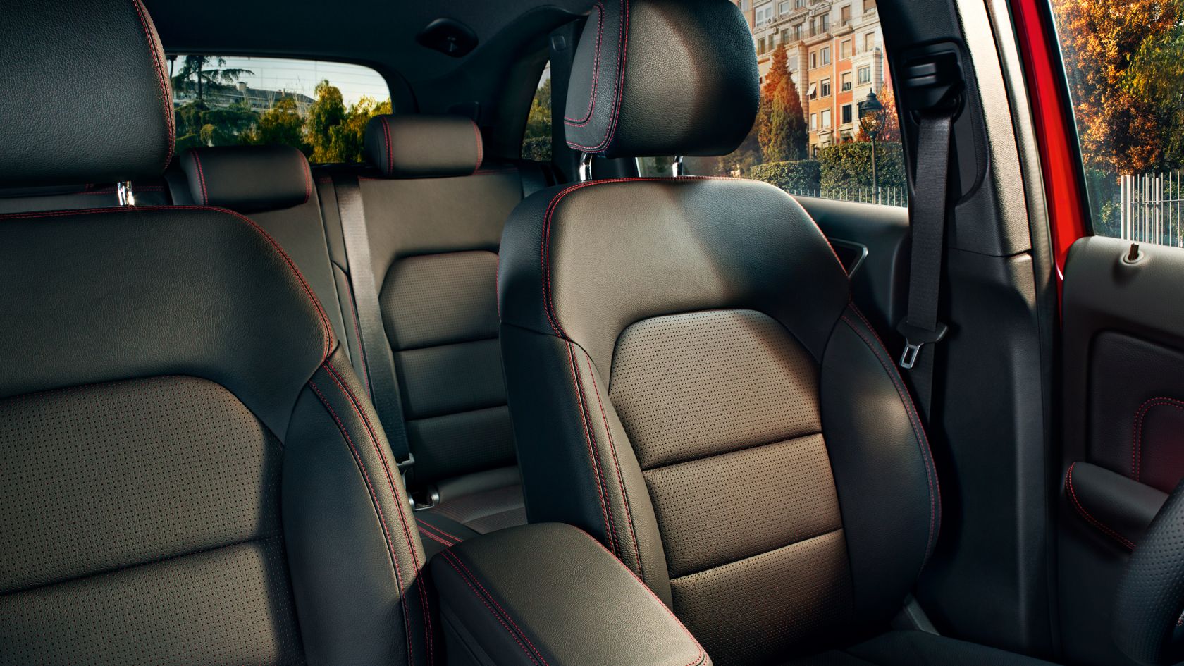 Lo más destacable en este modelo de Clase B es su elegancia deportiva, entre sus elementos sobresalen los asientos confort en cuero rojo cranberry con costuras de adorno en contraste.