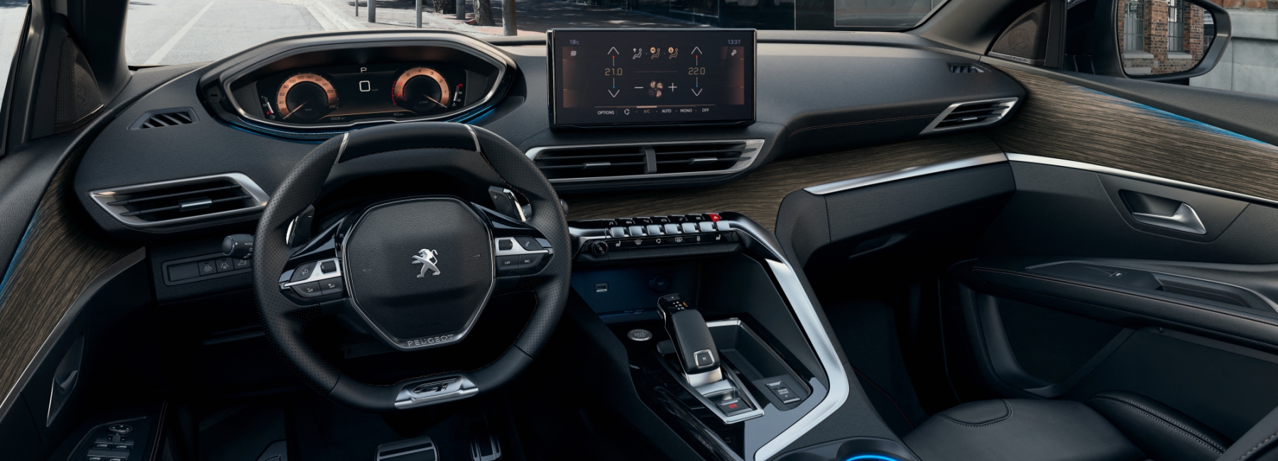El diseño mantiene el i-Cockpit utilizado en todos los modelos de la última generación de Peugeot. Sus principales características son el volante de reducidas dimensiones y el cuadro de instrumentos situado sobre éste para resultar más accesible a la vista.