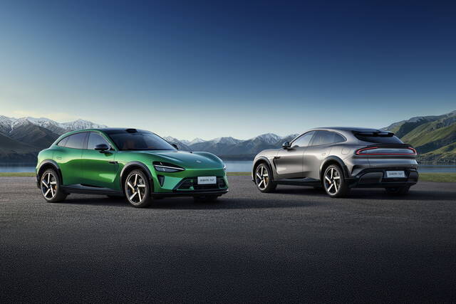 El Xiaomi está construido sobre la plataforma «Modena», la misma que se utiliza para el sedán SU7. Es un SUV de gran tamaño: mide 4,99 metros de largo, 1,99 de ancho, 1,61 de alto y tiene una distancia entre ejes de 3 metros. Tiene formas elegantes de SUV-coupé, con guardabarros esculpidos y una línea de cintura alta, y presenta una semejanza notable con el Ferrari Purosangue.
