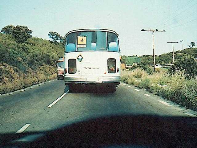 A) No, porque está prohibido rebasar la línea continua que separa los dos sentidos de circulación.
