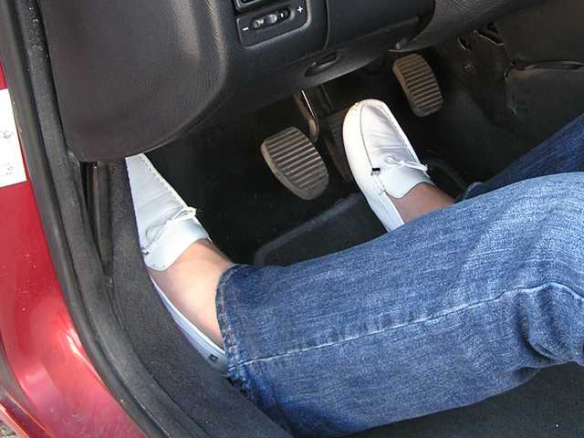 A) y soltar repetidas veces el pedal del freno para que no se bloqueen las ruedas.