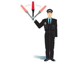 14 .- El agente del dibujo balancea una luz roja. ¿Qué deben hacer los conductores hacia los que se dirija esta luz?.