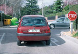 3 .- Su ciclomotor está detenido detrás de este turismo. ¿Debe volver a detenerse cuando éste reanude la marcha?.