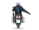20 .- Cuando un agente, desde una motocicleta, extiende el brazo hacia abajo inclinado y fijo, tal como se ve en este dibujo, ¿qué deben hacer los conductores hacia los que se dirige la señal?.