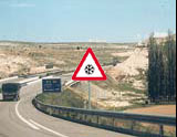 5 .- La señal triangular de la fotografía le advierte del peligro por la proximidad de una zona de la calzada cuyo pavimento...