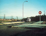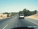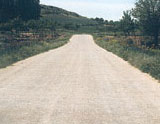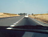 6 .- En esta calzada de doble sentido de circulación que se ve en la fotografía en la que no están delimitados los carriles, Ud. circula conduciendo su turismo por el centro de la misma, ¿es correcto?.