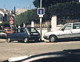 4 .- En esta intersección en la que no existe línea de detención pintada en la calzada, ¿dónde debe detenerse?.