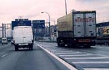 8 .- Ud. circula detrás de la furgoneta blanca que se observa en la fotografía, ¿le está permitido invadir el cebreado para tomar la próxima salida de la autopista?