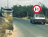 6 .- A la vista de la señal circular que se observa en la fotografía, ¿qué vehículo tendrá preferencia de paso sí, en este tramo de vía, por su estrechez, es imposible el cruce de ambos vehículos?