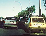 16 .- Debido a un atasco, el vehículo blanco que se observa en la fotografía, se ha quedado detenido en la intersección, impidiendo la circulación transversal, ¿cree Ud. que ha actuado correctamente el conductor al penetrar en la intersección?.