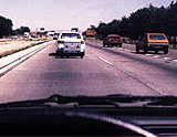 23 .- Circula conduciendo su turismo detrás del vehículo que arrastra un remolque que se observa en la fotografía. Si Ud. desea adelantarlo, ¿le está permitido hacerlo por el carril derecho que está libre?.