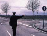 30 .- Teniendo en cuenta la señal emitida por el Agente y la señal vertical que se observa a la derecha de la fotografía, Ud. debe ...