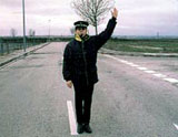 18 .- Un agente de la autoridad responsable del tráfico que esté regulando la circulación levanta el brazo verticalmente, tal y como se observa en la fotografía, y...