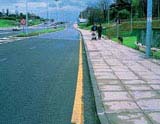 2 .- ¿Qué indica la línea longitudinal continua, de color amarillo, pintada junto al borde de la calzada de la fotografía?.