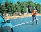 7 .- ¿Deben atender los conductores la indicación realizada por el personal de obra que aparece en la fotografía regulando el paso?