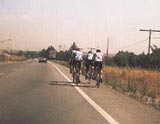 22 .- Ud. va a adelantar al grupo de ciclistas que se observa en la fotografía. ¿Debe invadir el carril de sentido contrario de la calzada?.