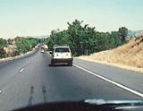 28 .- El conductor del vehículo blanco que se observa en la fotografía ha advertido que Ud. le quiere adelantar y se ha ceñido todo lo posible al borde derecho de la calzada. ¿Es correcto su comportamiento?.
