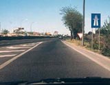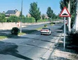 13 .- ¿Qué peligro indican las señales triangulares que, a ambos lados de la calzada, se observan en la fotografía?.