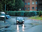 15 .- El carril izquierdo de la calzada de la fotografía está delimitado, a ambos lados, por conos. ¿Le está permitido desplazarse con su vehículo a este carril?.