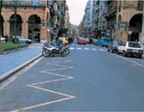 25 .- ¿Qué indica la línea en zigzag, de color amarillo, pintada en la calzada de la fotografía?.