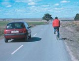 6 .- Usted va a adelantar al ciclista igual que lo hace el conductor del vehículo rojo que se observa en la fotografía. ¿Es correcto?.