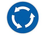 28 .- La señal que se observa en el gráfico le obliga a realizar una circulación giratoria en el sentido de las flechas. ¿Dónde se la puede encontrar?.
