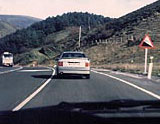 6 .- A la vista de la señalización existente en la vía, fuera de poblado, de la fotografía, ¿le está permitido cambiar de dirección?