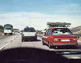 29 .- El turismo rojo que se observa en la fotografía transporta en su baca carga que no es equipaje. ¿Es correcto?