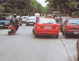 16 .- Si circula con su motocicleta por una vía urbana de doble sentido y desea estacionar, ¿en qué lado debe hacerlo?.