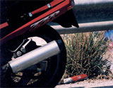 14 .- A la motocicleta de la fotografía se la ha averiado el dispositivo silenciador de explosiones y produce ruidos que molestan, ¿le está permitido circular en estas condiciones?