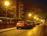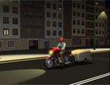 1 .- Con su motocicleta que lleva enganchado un remolque, ¿puede circular, de noche, por esta vía urbana suficientemente iluminada que se observa en la fotografía?